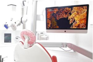 また、補綴物の説明等もこちらのモニターで大きく写し、納得のいく形で提供させていただいております。
