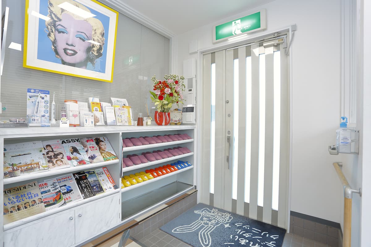 特にメインのデンタルクリンコースのほか、インプラントクリーニングコースとホワイトニングのコースには、ゆったりと処置を受けていただくために、入江あすかさんの絵が描かれた専用の個室『デンタルクリンルーム』を御用意しました。