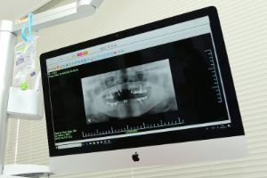 チェアに座ったままの状態で大きなモニターが見れるので、移動することなく患者様自身のレントゲンをお見せしながら、お口の状態についてインフォームドコンセントを行っています。