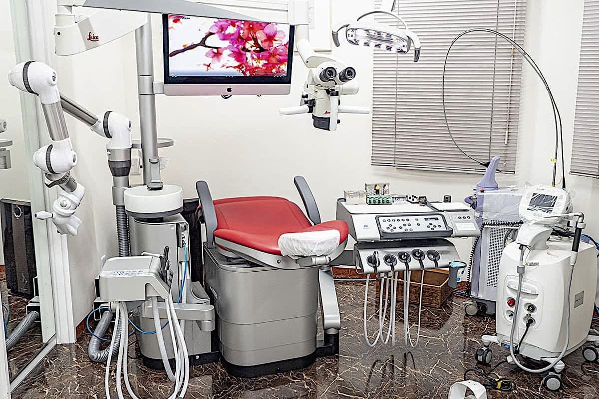 当院は最新機器を常に導入し業界の最先端を走ってきました。特に審美歯科治療・インプラント・特殊義歯に関しては最新機器を海外から輸入したりと人材・機材の面でも自信を持っています。診療室の一番奥は個室の特別診療室になっていて、ここには最新機器が詰め込まれています。