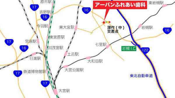 R16 深作(中)交差点 [ 岩槻 I.C. より約 2km ] より280m